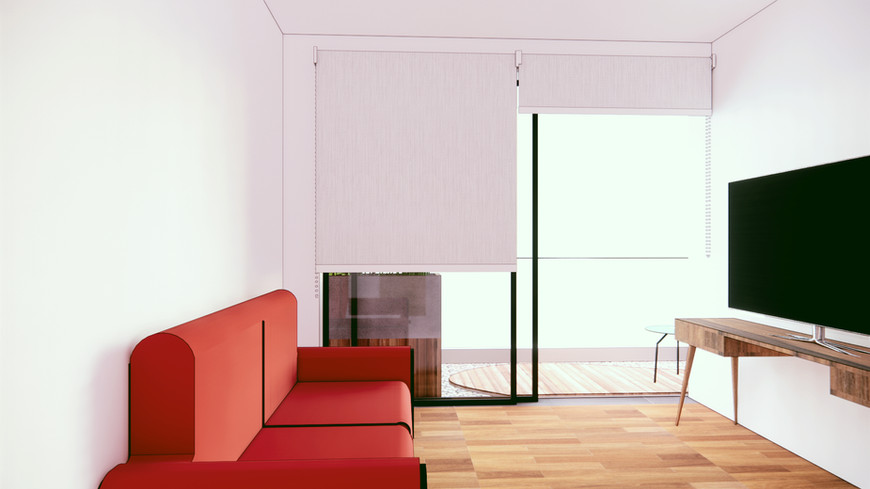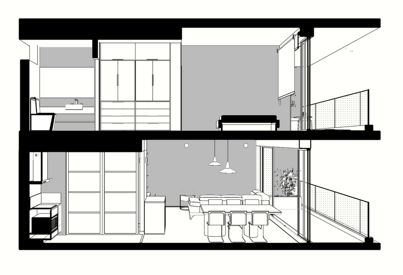 Além disso, o projeto propõe revestimentos e acabamentos para o apartamento que não foram realizados pela construtora. Também está prevista uma intervenção paisagística para o terraço do segundo piso.